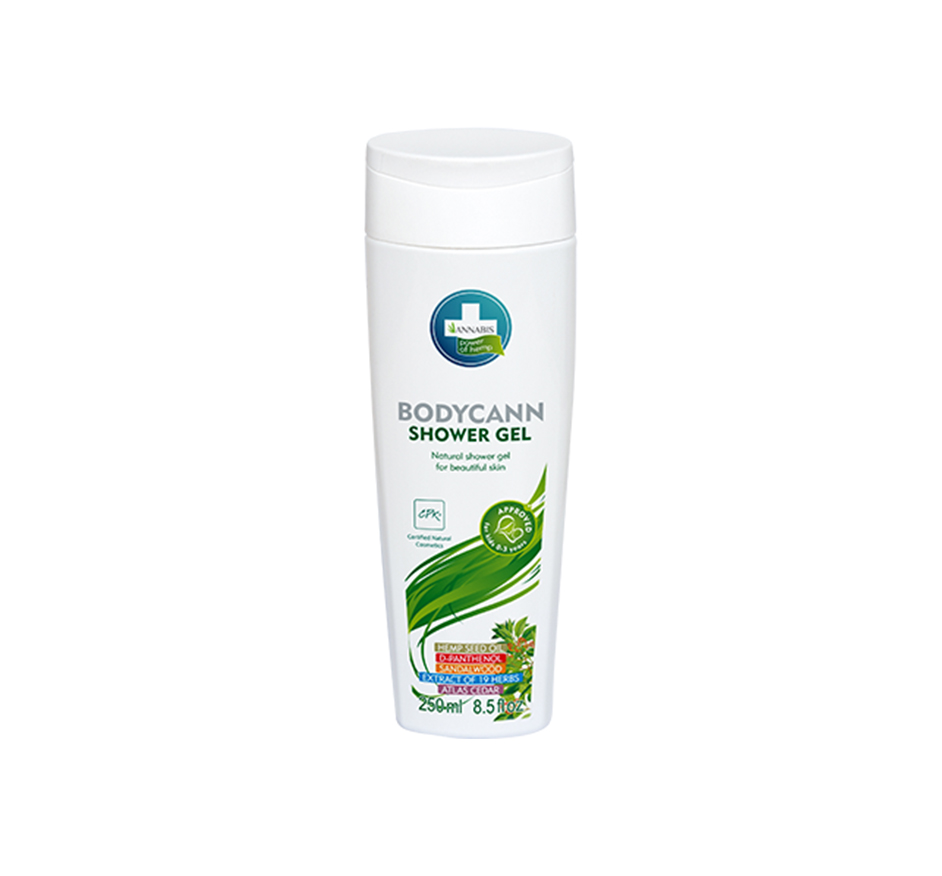 O Bodycann Gel de Banho limpa suavemente a sua pele sem a secar ou irritar. Os extratos de ervas e o óleo de semente de cânhamo e o extrato de calêndula acalma, nutre e hidrata a pele. Após a lavagem, a pele permanece macia e fresca. O extrato de calêndula e pantenol ajudam a promover a qualidade normal da pele, melhorando a sua aparência. Graças à sua composição, o gel de banho também é adequado para pessoas com pele sensível.