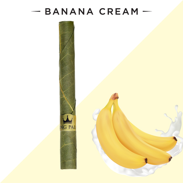 • Embalagem amarela e preta King Palm Banana Cream com logos, texto e imagem de banana