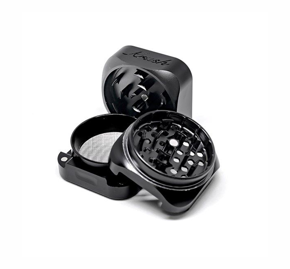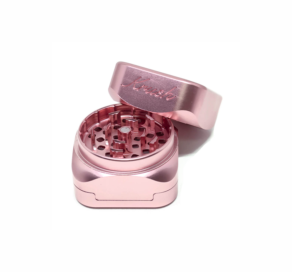 A linha de grinder Krush tem formato quadrado e oferece aos consumidores um grinder de ervas ergonômico. Contornos suaves que são suaves para as mãos e fáceis de girar, independentemente da densidade das ervas.