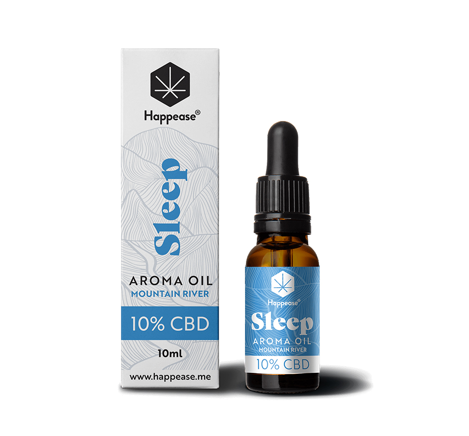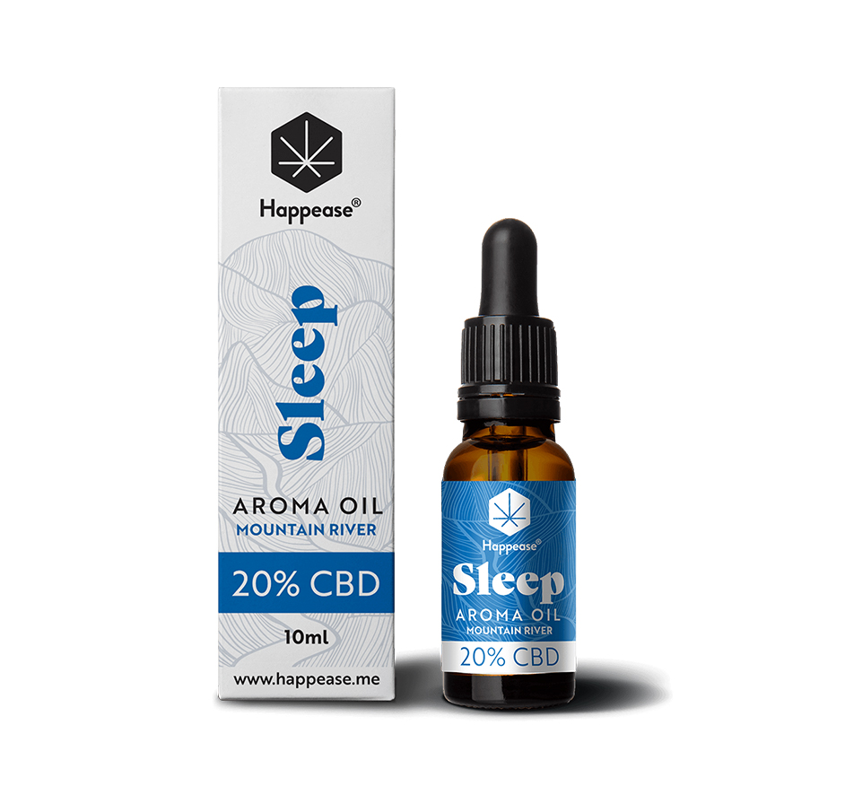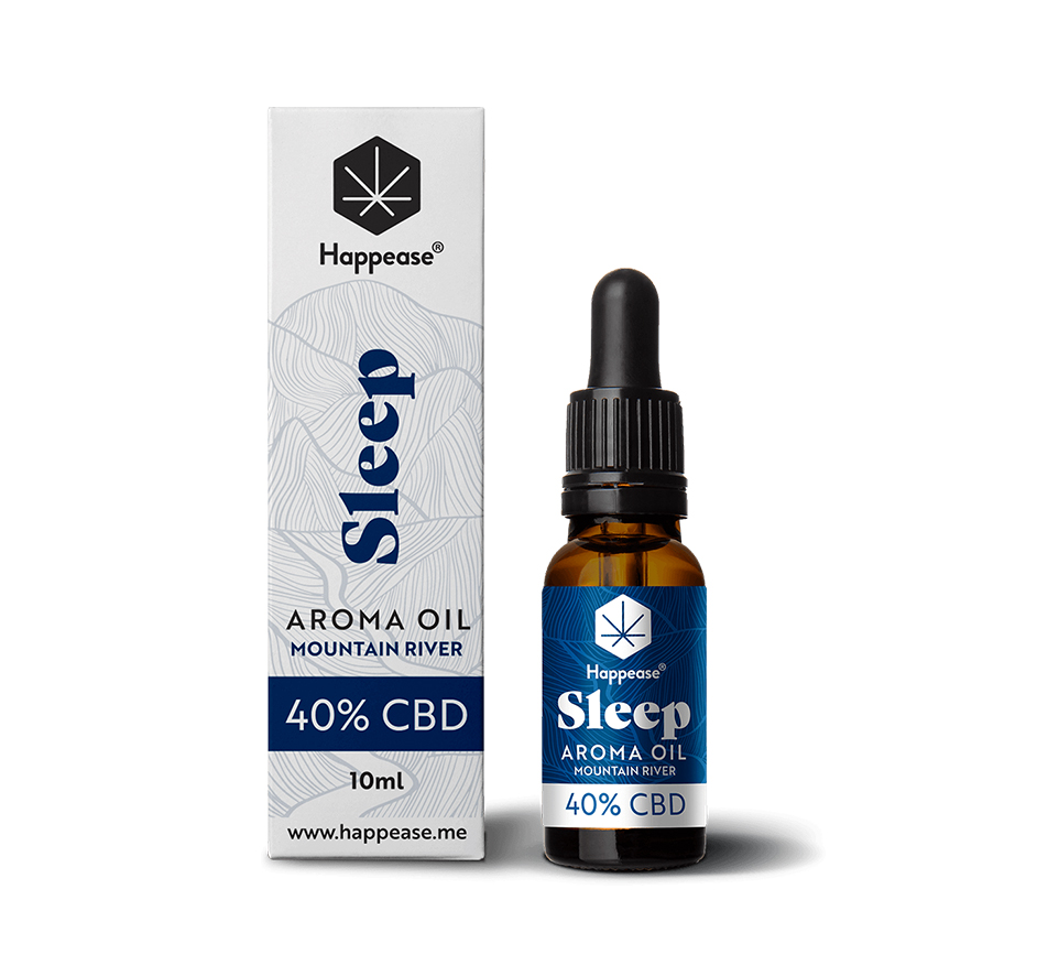 • Óleo aromático Happease Sleep Mountain River 40% CBD com embalagem