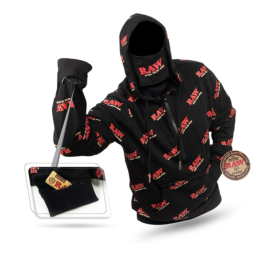 Esta colaboração da Rolling Papers e RAW criou o Hoddie preto Rawler. Hoddie de alta qualidade que pode usar como acessório de fumar!