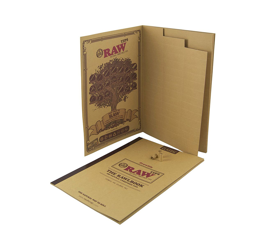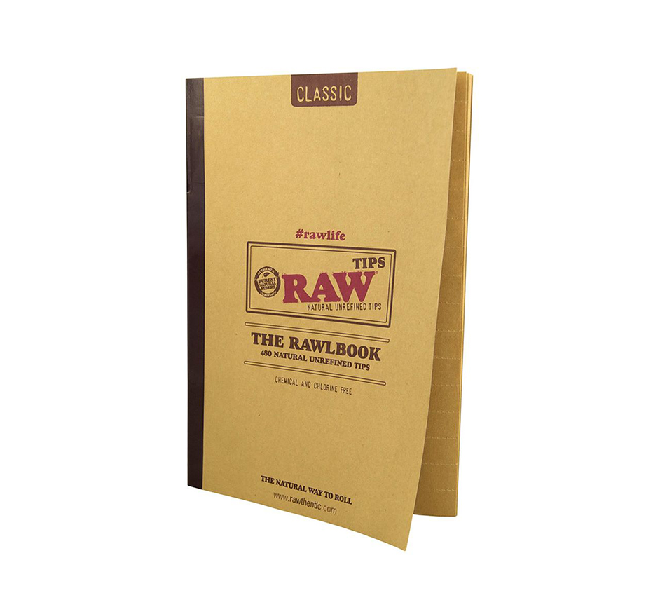 O RAWlbook foi criado para um pequeno grupo de fumadores que usam muitas dicas e gostam de cada fumaça. O RAWlbook é preenchido com o nosso papel de ponta RAW original clássico, disposto em folhas rasgáveis com precisão, feitas de papel natural e cuidadosamente cortadas com o grão para garantir que cada ponta enrole suavemente sem “esquadrar”.